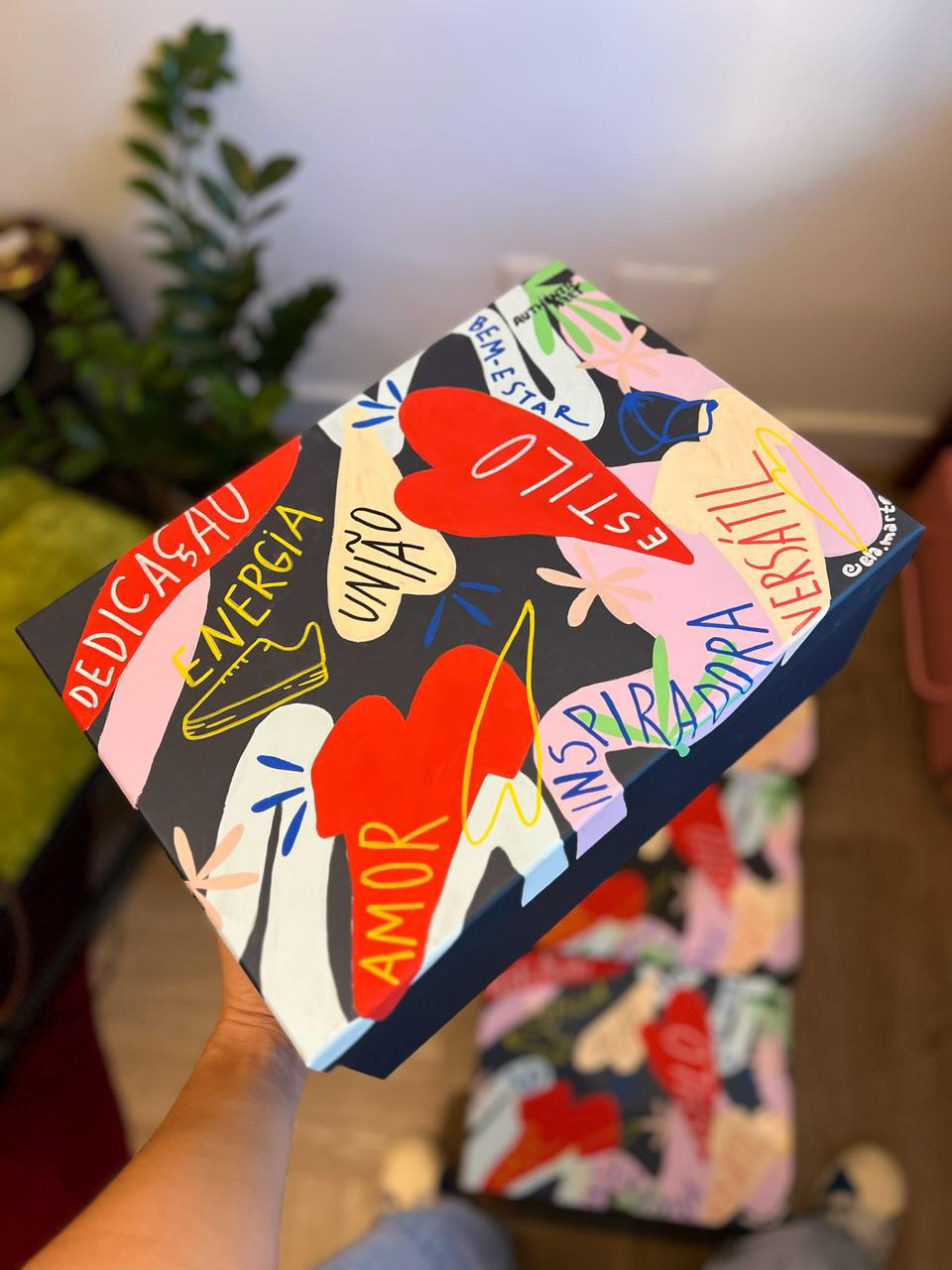 The digital art was printed as a postal card and the design painted in 7 boxes, gifted to digital creators.
