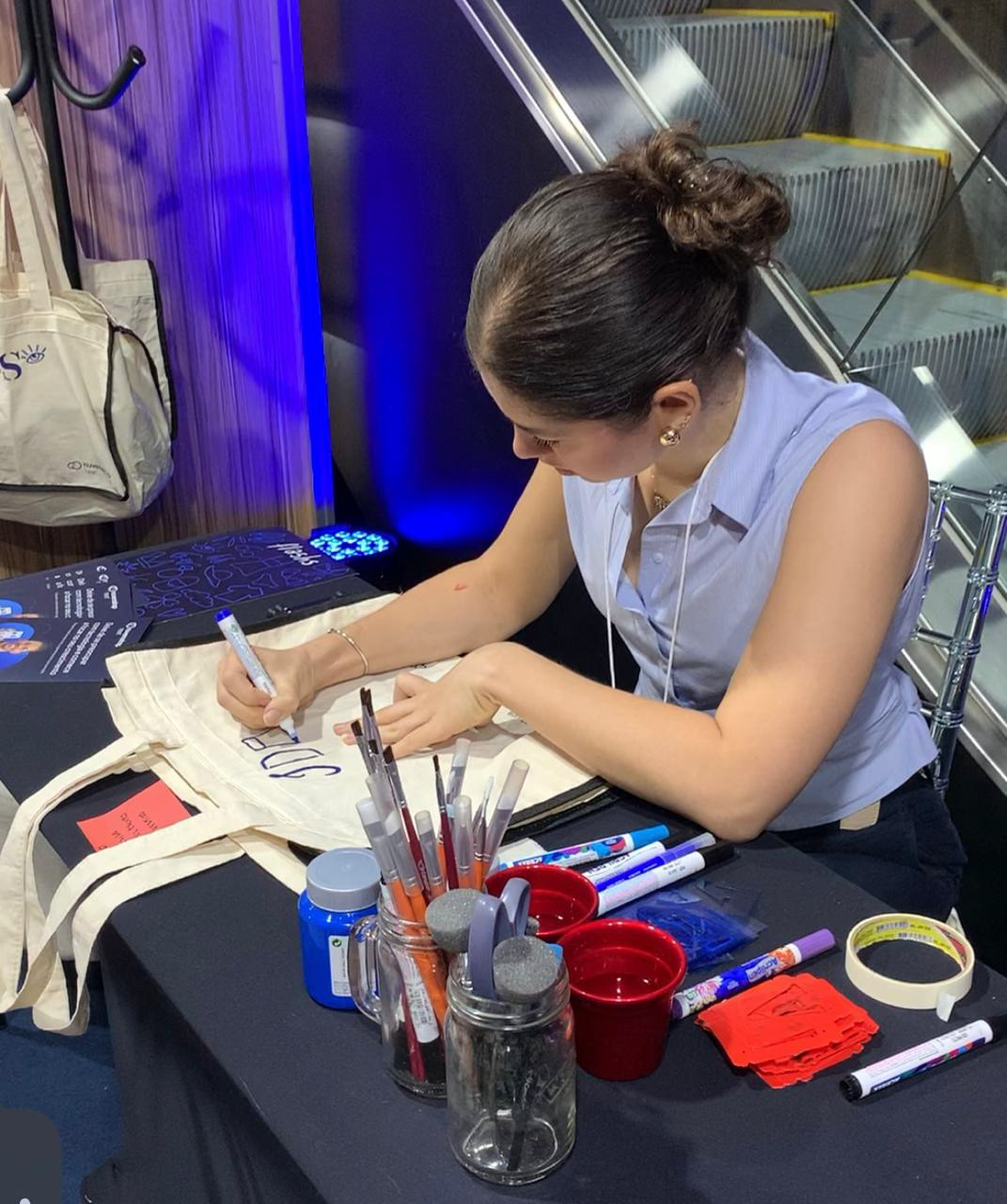 Ao longo de três dias de evento, mais de 200 sacolas foram personalizadas, com assistência da artista Juliana Souza.