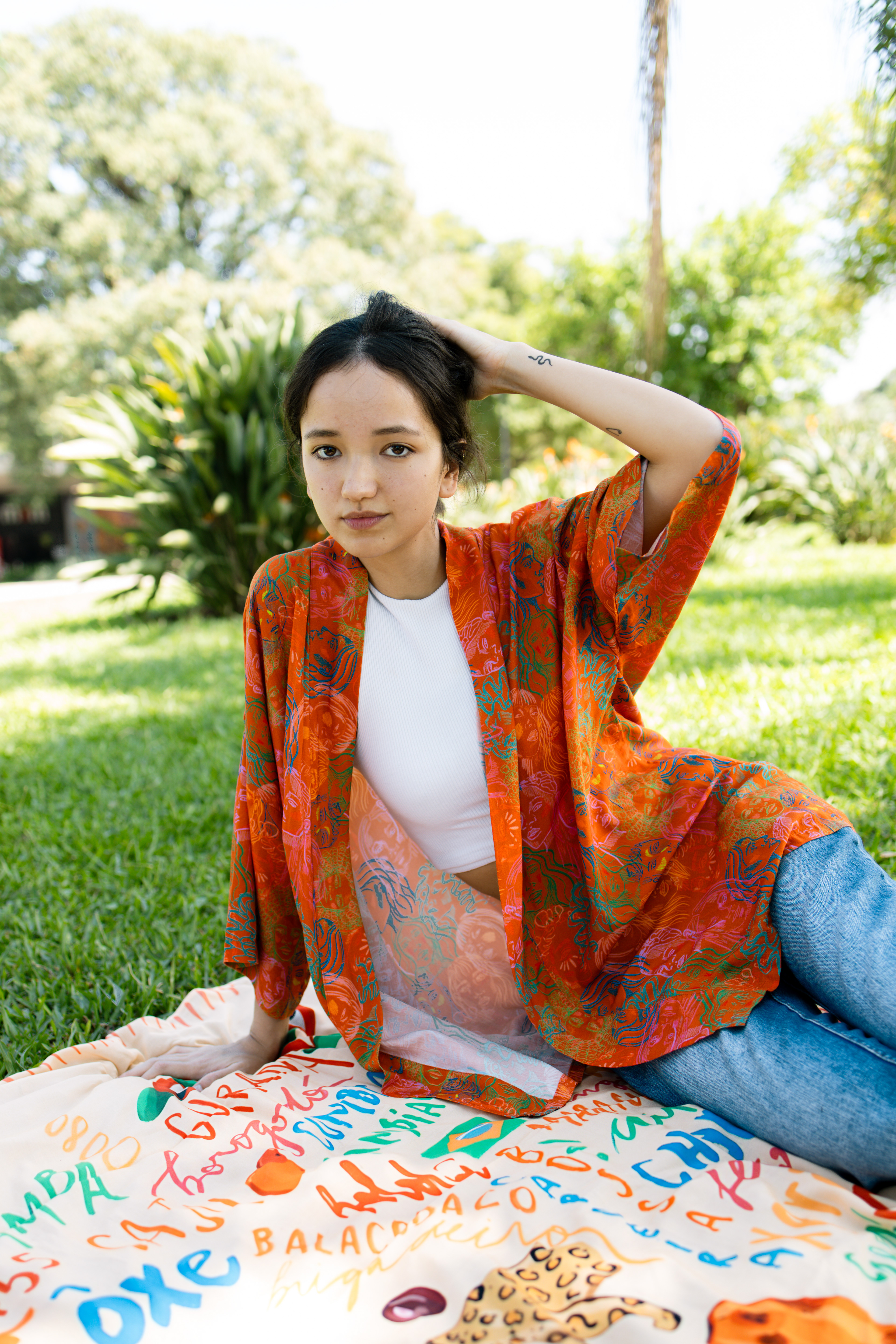 Some portraits were turned into digital illustrations that later where transformed into a rapport pattern. The pattern was printed in a viscose fabric and used to confection kimonos for ELA MARTE's website.